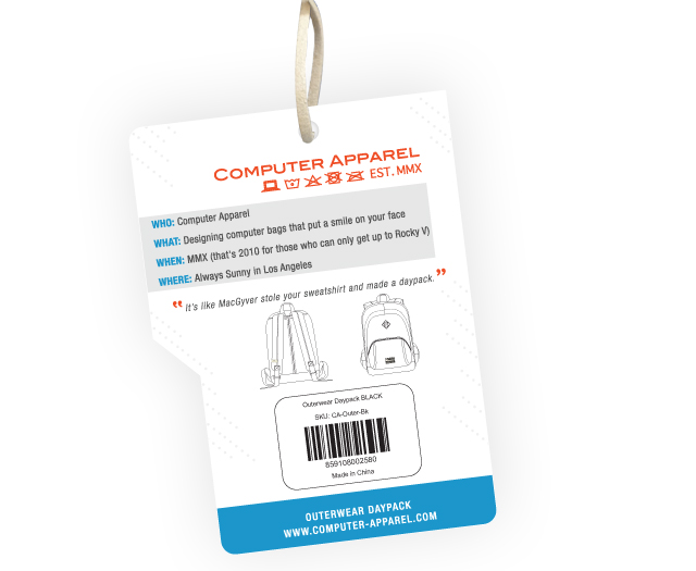 02. Outerwear Daypack hang tag (front). -