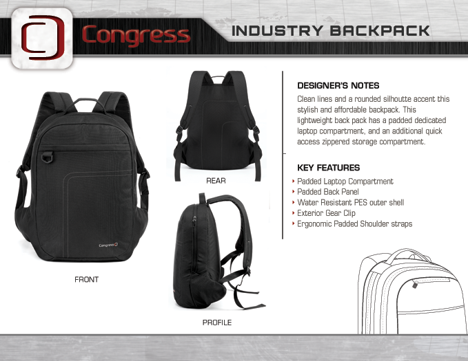 Example of sales sheet for Congress branded bags and sleeves.